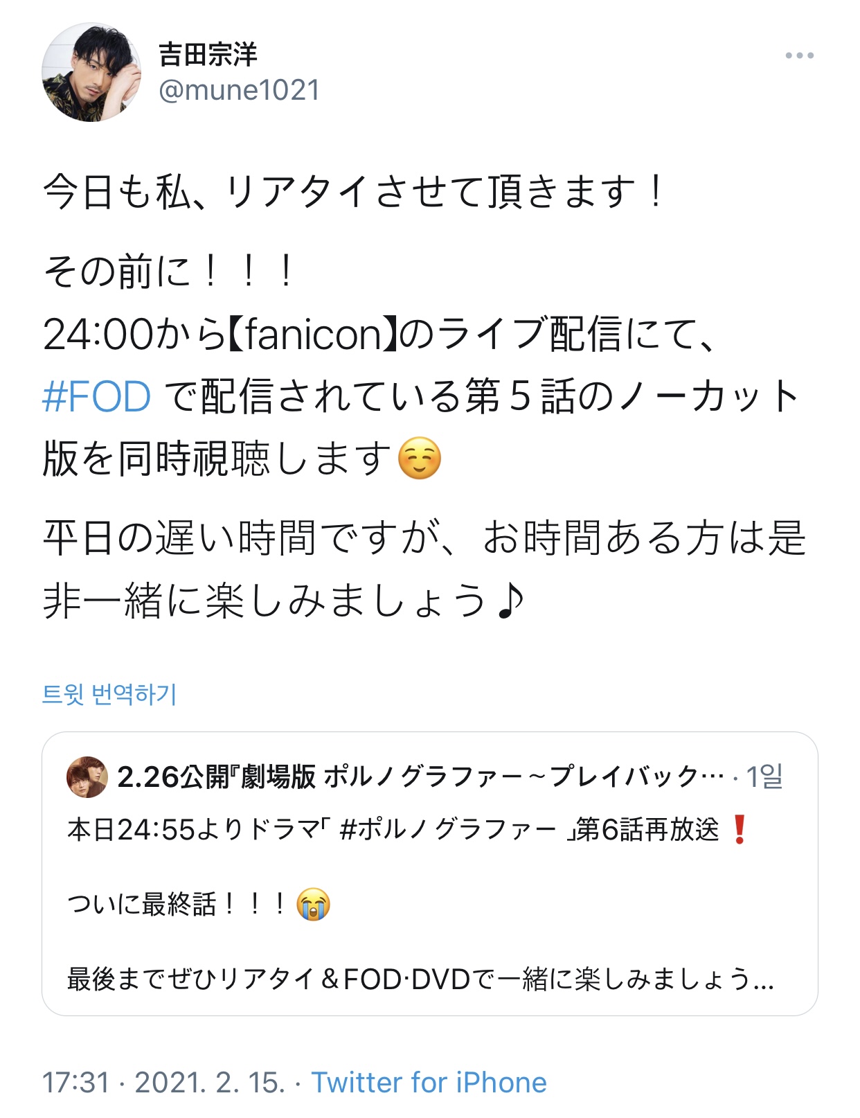 ![twitter] 2021.02.16 포르노그래퍼 최종화 재방영 리아타이 (リアタイ) 아카이빙](https://i0.wp.com/blog.kakaocdn.net/dn/KA4Uw/btqXD3LZnZ0/wzbkqAsUk7TQm2xNy4C1p1/img.jpg?ssl=1)